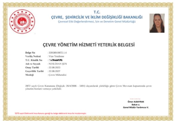ÇEVRE DANIŞMANLIK YETERLİK BELGELERİMİZ